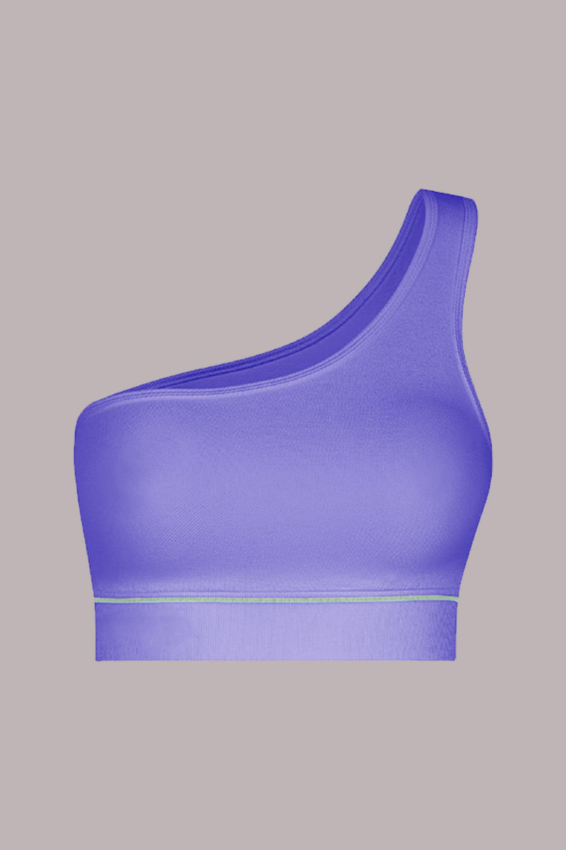 Top modelagem um ombro só com alça larga. Top duplo com bojo removível. Trama com canelado em diagonal e leve brilho. Faixa em tom contraste na barra. Acabamento antimicrobial. Tecnologia sem costura. Composição: 94% Poliamida, 6% Elastano. Bojo: 100% Poliéster.