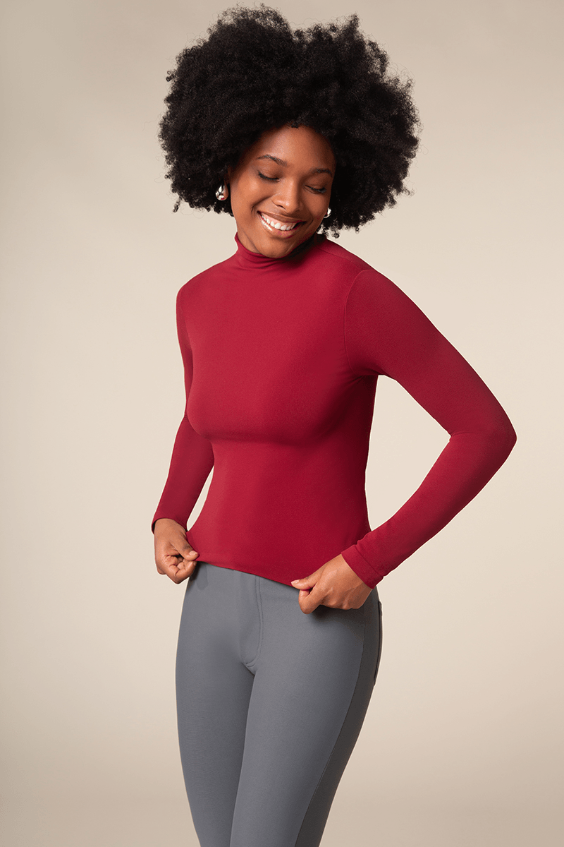 Blusa manga longa e gola alta. Peça tecida em tecnologia sem costura, com trama fechada que ajuda a manter a temperatura corporal.