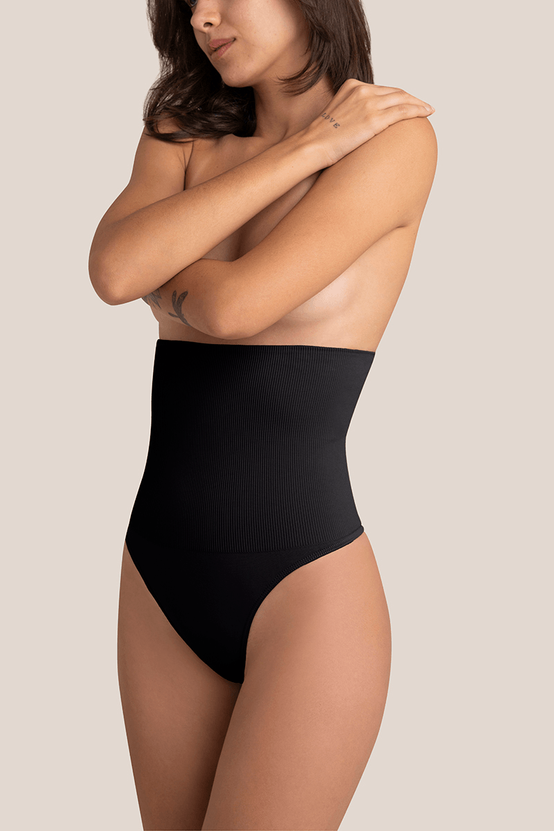 Calcinha fio dental cintura alta redutora. Possui forro em algodão, borda interna de silicone e é sem costura. Não marca sob a roupa e comprime e modela com conforto e segurança.