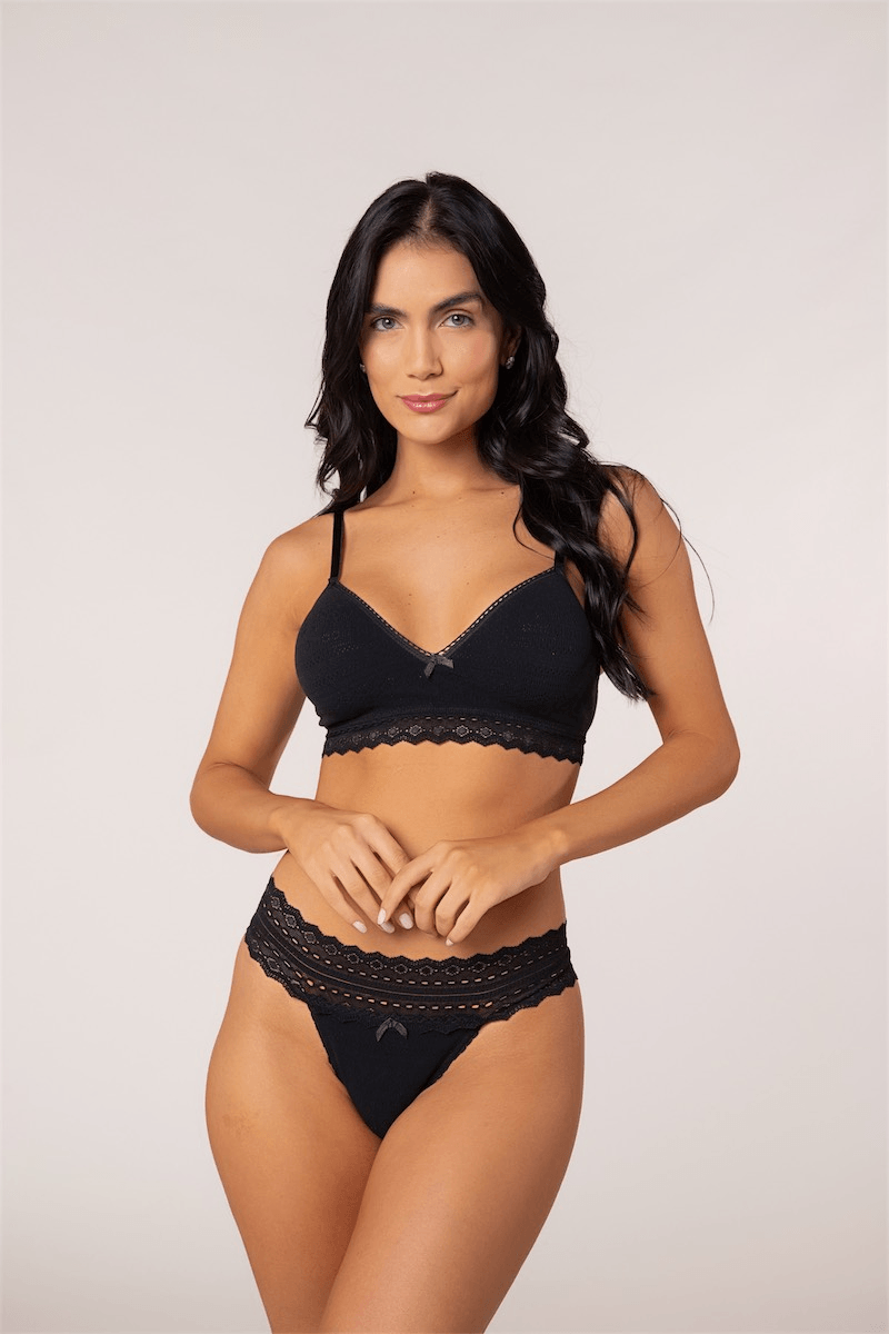Calcinha modelo tanga em renda sem costura. Média cobertura, valoriza todos os tipos de quadris. Cós reto em renda. Não aperta e não marca. Tecnologia exclusiva.