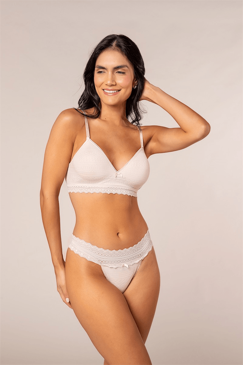 Calcinha modelo tanga em renda sem costura. Média cobertura, valoriza todos os tipos de quadris. Cós reto em renda. Não aperta e não marca. Tecnologia exclusiva.