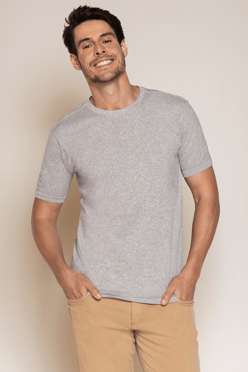 Camiseta feita com mistura de algodão e poliamida, confortável e estilosa para o dia a dia. Possui modelagem tradicional, decote careca, manga curta e é sem costura.