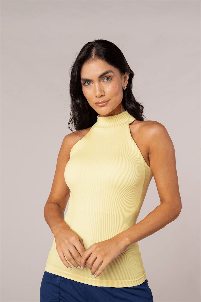 Regata cava americana com malha canelada que alonga o corpo. Top interno que auxilia na sustentação e conforto. Valoriza os ombros. Atemporal, possibilita a composição de diversos looks. Tecnologia sem costura.