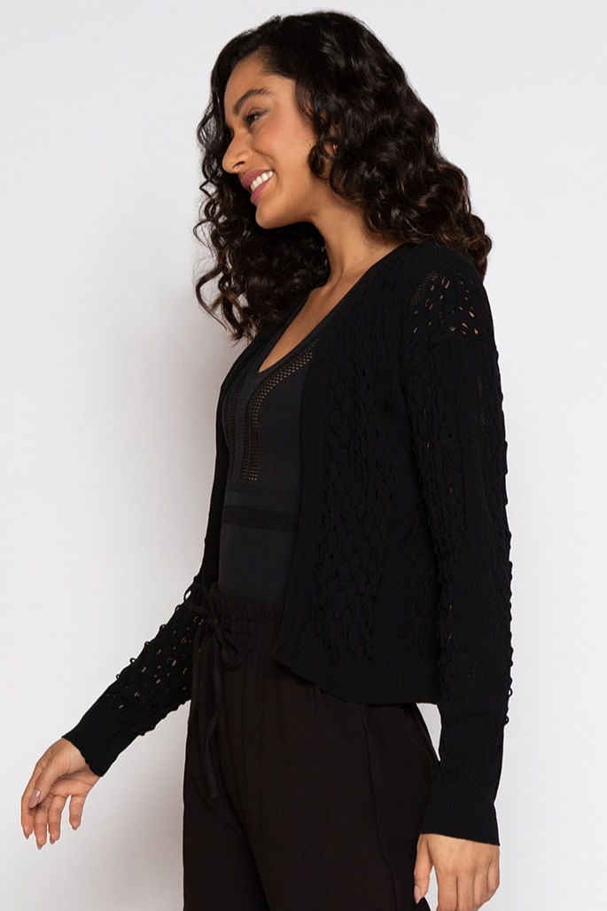 Cardigan confeccionado em renda sem costura, elastano 40, com ponto tricot e comprimento regular, que traz modernidade para a peça. Possui punho e vista canelados. Peça diferenciada e clássica, ideal para ser combinada com vestidos, calças, shorts e saias de nossas coleções. Produto com informação de moda no estilo clássico e básico, que não pode faltar em um guarda-roupa invernal. Composição: 92% Poliamida, 8% Elastano. Código do produto: I06412