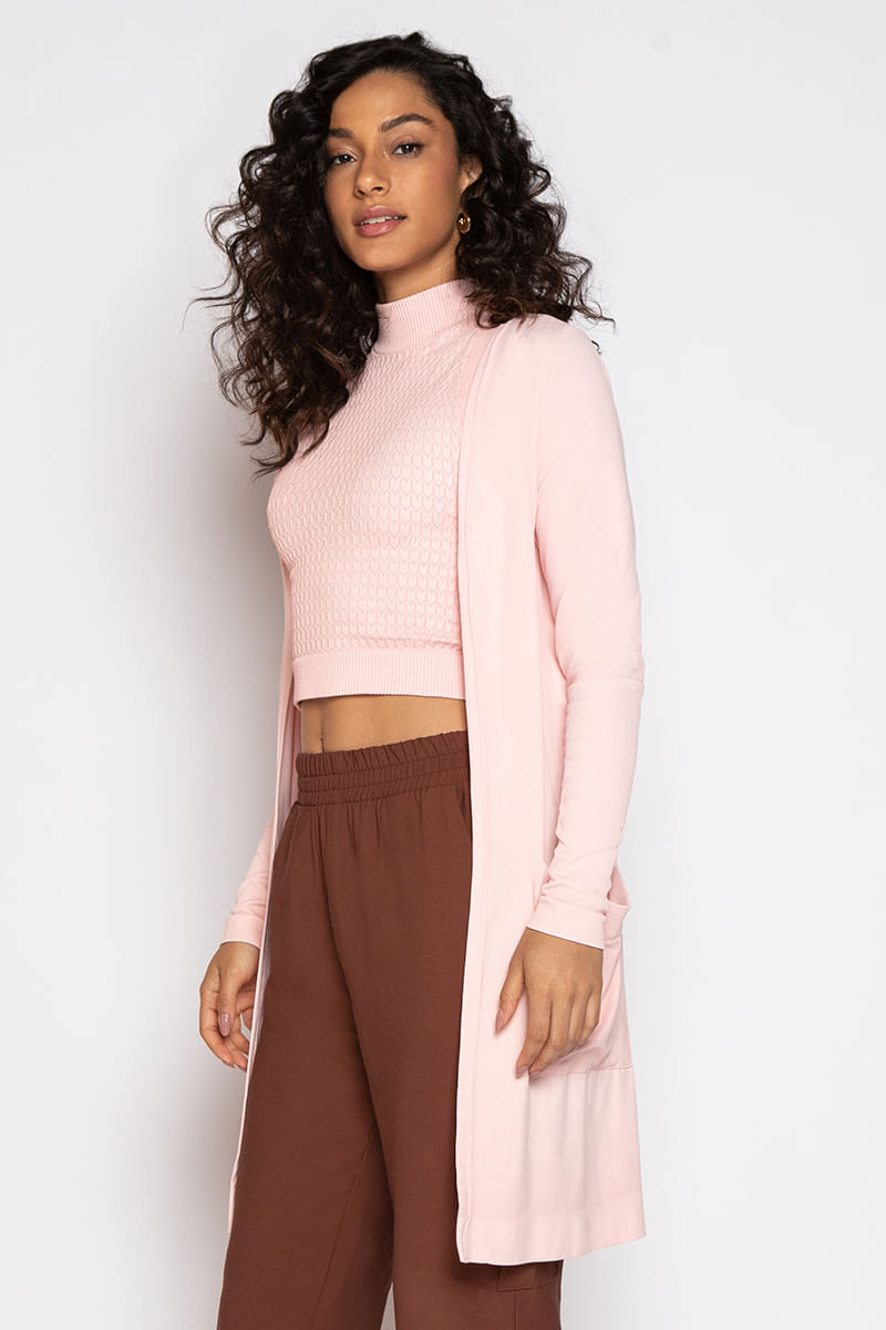 Cardigan alongado com modelagem ampla, bolsos e de punho largo. Peça oversized e elegante, ideal para ser combinada com vestidos, calças, shorts, saias e outras peças da coleção. Produto com informação de moda no estilo clássico e atemporal, podendo também compor looks básicos. Tecnologia sem costura. Composição: 100% Poliamida. Código do produto: A06407