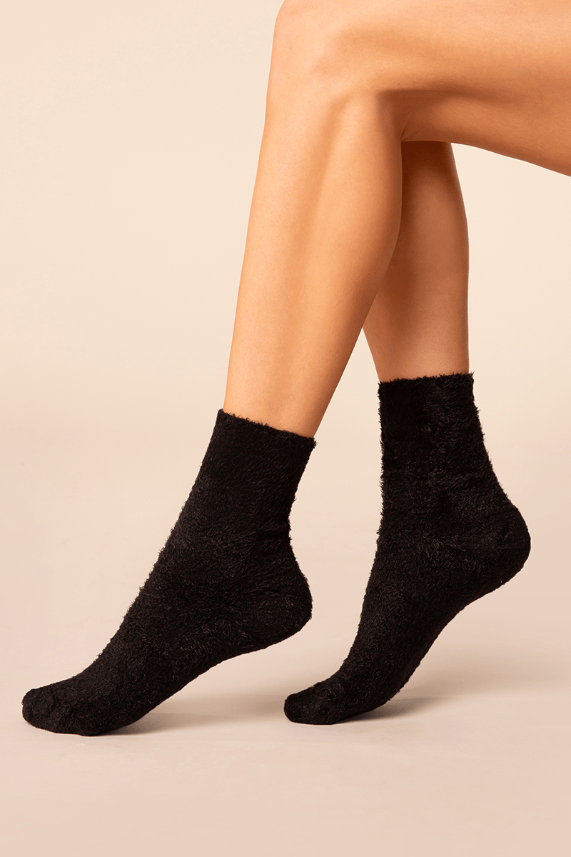 Meia cano médio de fio pelo, tecnologia Fio Pelo exclusiva que mantém a temperatura do corpo aquecida. Combinação especial de fios com toque macio e sedoso.