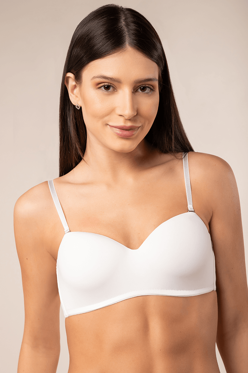 Média cobertura e média sustentação, ideal para seios pequenos e médios. Bustiê com bojo inteiriço que proporciona encaixe perfeito. Alças removíveis e laterais mais largas em tecido duplo que garantem conforto e sustentação. Poliamida 90%, Elastano 10%. Bojo Poliéster 100%.