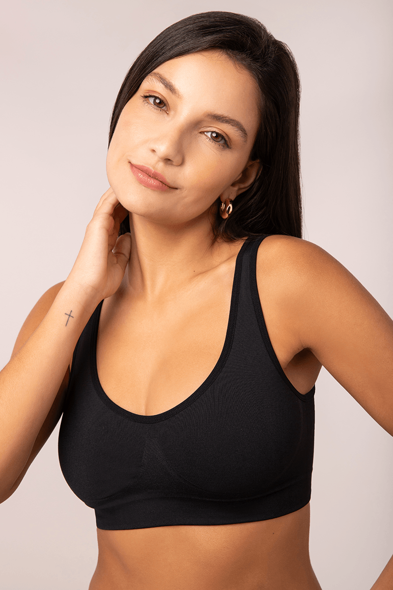 sutiã de alças largas e bojo removível. Confeccionado na tecnologia sem costura e possui a tecnologia Seamsless Dry que traz conforto térmico, possui menos áreas de fricção, ventilação estratégica e fornece suporte muscular. O tecido recebe tratamento antimicrobial que deixa você mais protegida, pois evita a proliberação de fungos e bactérias, principalmente os causadores de maus odores. Cós em tecido duplo para maior conforto. Poliamida 93%, Elastano 7%. Bojo Poliéster 100%.