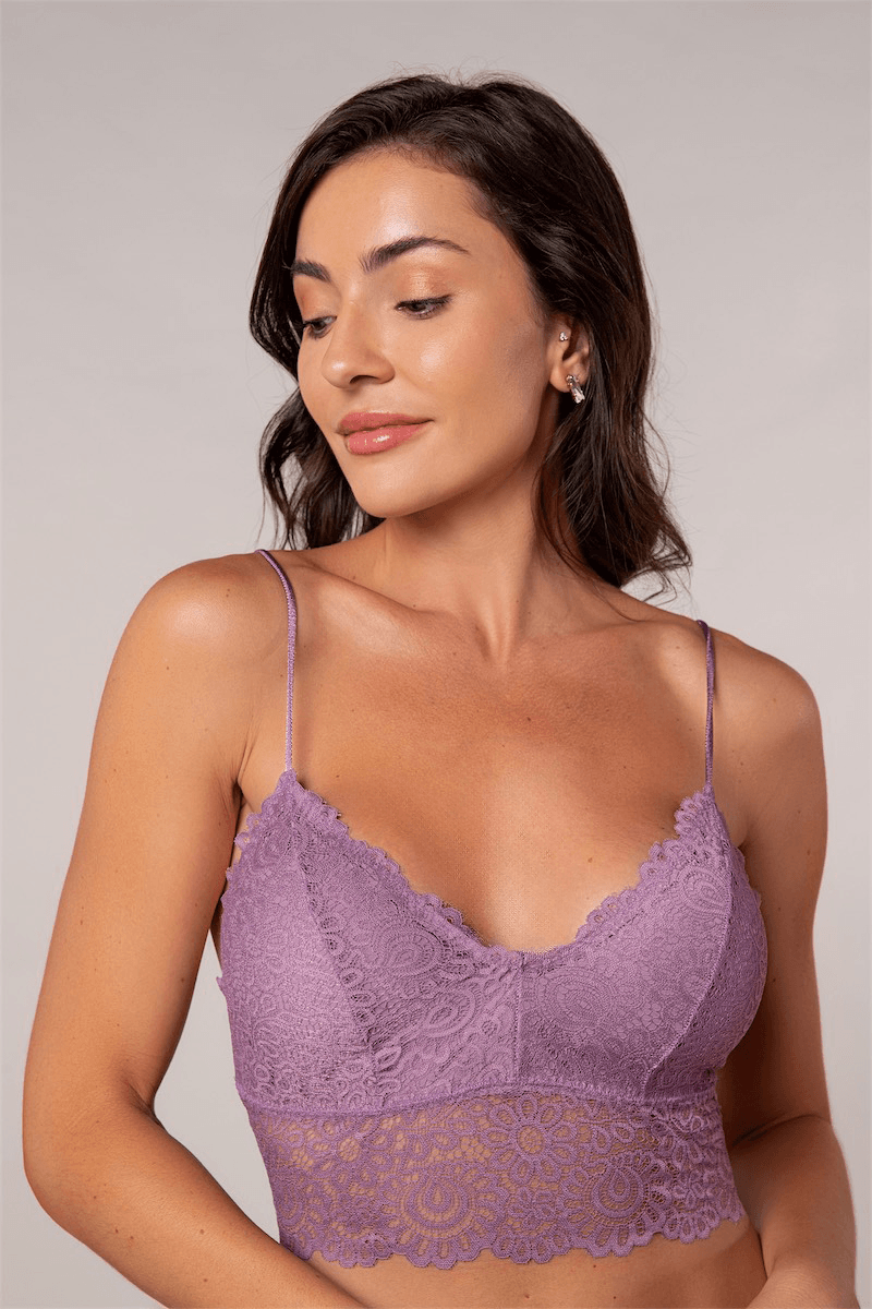 Top longline em renda floral exclusiva. Ideal para todos os tipos de seios. Média cobertura e média sustentação. Forro interno em microfibra macia e bojo removível. Alças acetinadas e delicadas.